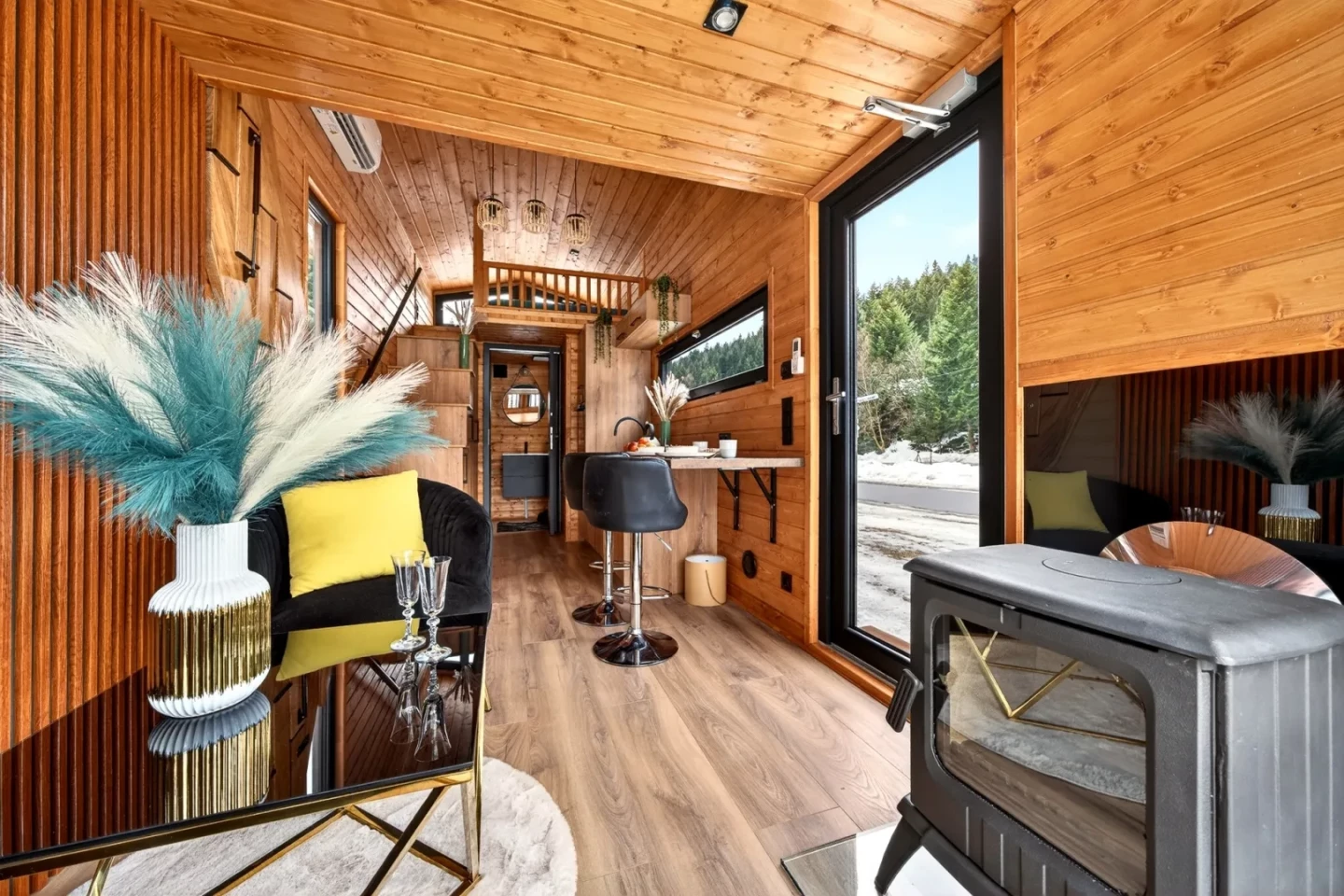 The Katrin is designed by Craft House – which operates across Poland, Austria, and Ireland – and has a length of 7.2 m (23.7 ft), which is on the compact side even for a European tiny house, so it could make a good candidate for a nomadic lifestyle. It's based on a double-axle trailer and is finished in engineered wood and standing-seam sheet metal.