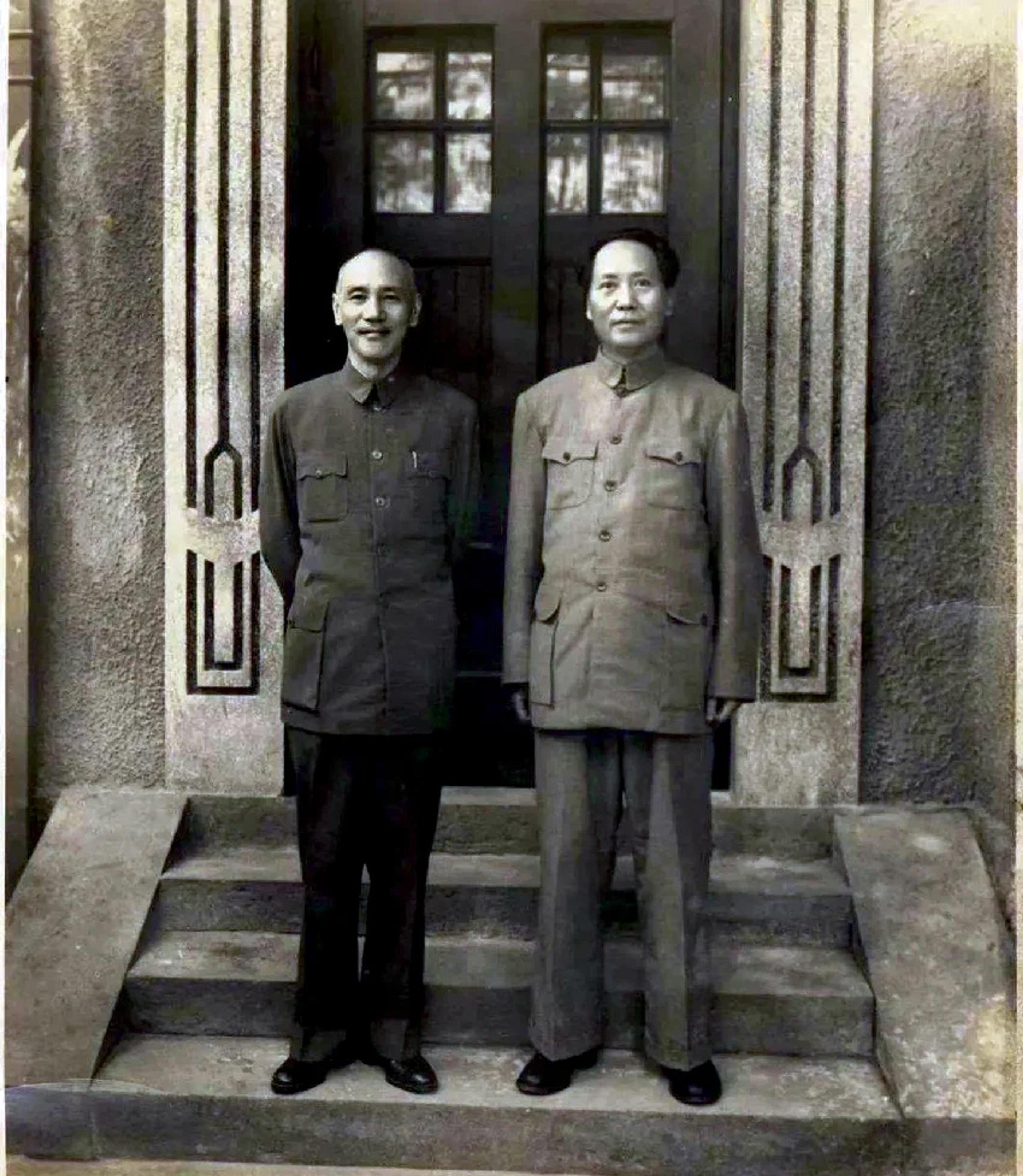 Chiang Kai-shek (left) and Mao Zedong (right) in Chongqing, China, 1945. Public Domain