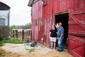 Joyce and John Blaske stand at the entrance to their barn at their farm in Onaga, Kansas. Photograph: Audra Mulkern Much of the acreage lost to the Blaskes sits across the road from the 35 acres they retain today. “I can’t leave our property without seeing what we lost,” Blaske frets. “You can’t imagine how that cuts into me every day. It just eats me alive.”
