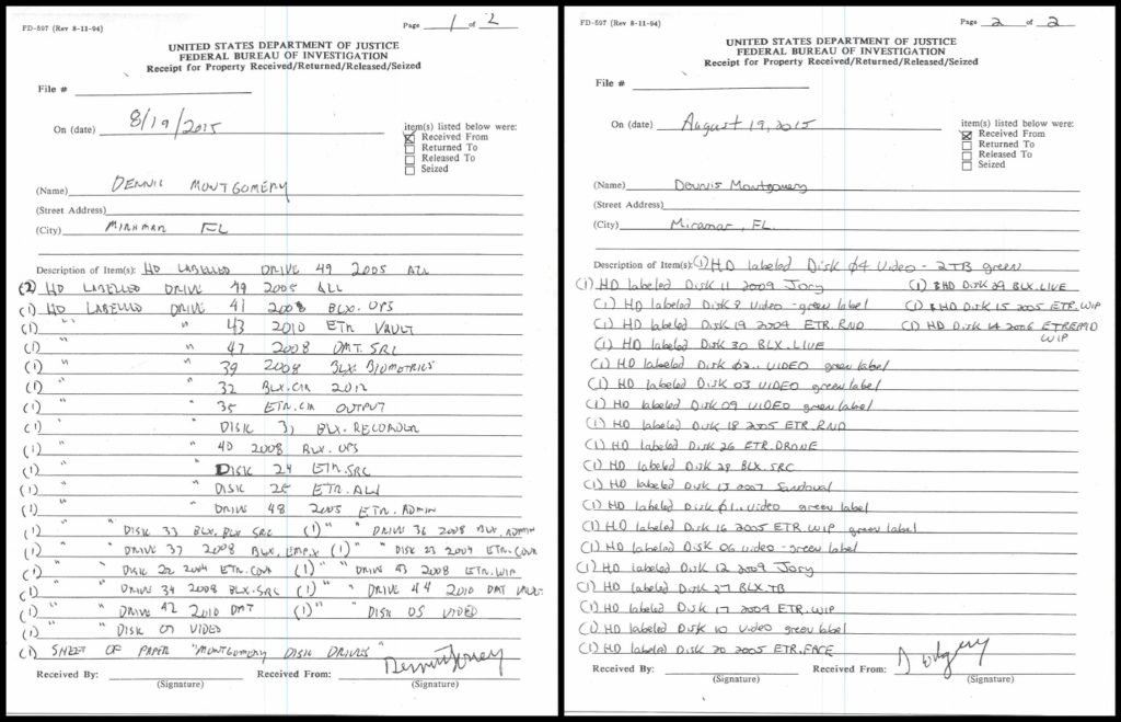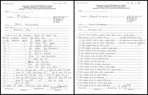 The FBI provided Montgomery with a detailed receipt for the 47 hard