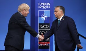 ‘Rightwing populists have forced opportunistic conservatives to mimic their ideas.’ Boris Johnson and Viktor Orbán at the Nato 70th anniversary summit.