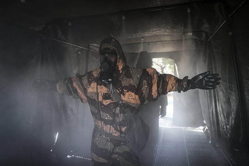 Wearing gas masks and suits designed to protect during chemical weapons attacks, Guard members have been seen washing down areas to kill lingering traces of the virus that causes the COVID-19 illness. They’ve touted operations to target those hoarding desperately needed medical supplies.