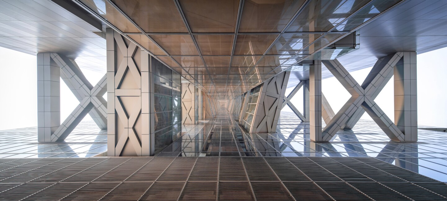 Hanking Center's connecting bridges and diagonal supports are quite striking and help provide structural stability for the main tower