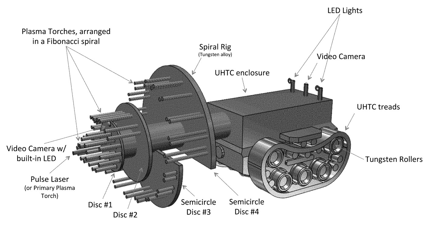 The Rapid Burrowing Robot (RBR) places many high-temp plasma torches on rotating discs