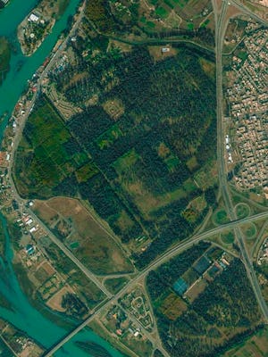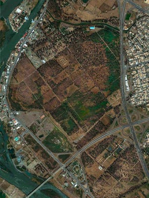 Mosul had once been known as “the Green City.” Trees had lined the avenues; there were forested valleys. But the intense warfare during ISIS’s occupation ravaged much of this vegetation. “ISIS cut some of the trees. Otherwise they were ignored,” says Abdullah Al-Dabbagh, chief gardener at Mosul’s Northern Technical University. “Nobody took care of them and they died. Life stopped.” Pollution, desertification, urban expansion, and flooding also played their part. By 2021, the Green City had turned gray.