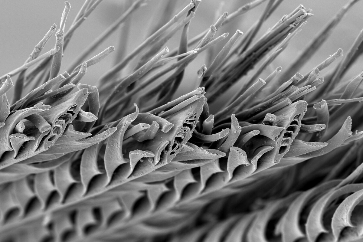 Using a scanning electron microscope, microcomputed tomography, light microscopy and 3D videography, the researchers were able to look at the shafts of the belly feathers, which are a fraction of the width of a human hair, and the even smaller barbules. These tiny hooks provide mechanical structure and aerodynamic integrity.