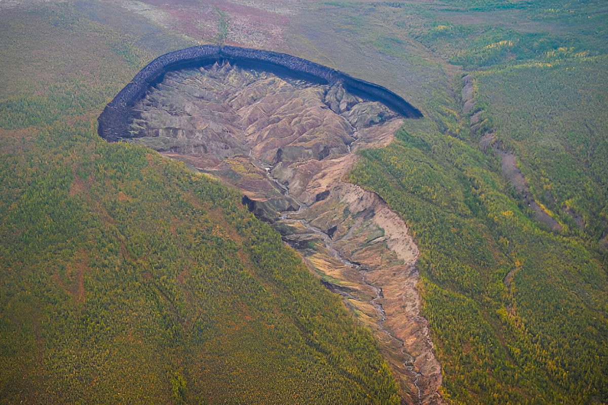 This ever-growing permafrost-destroying 'sink hole' was originally a small gully in the 1960s
