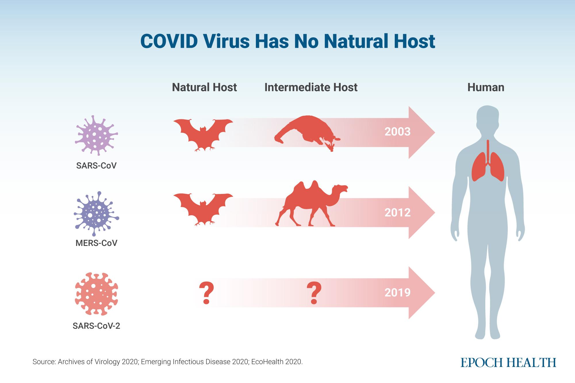 Unlike SARS and MERS, no animals have been confirmed as the natural host of the COVID-19 virus, despite extensive investigative efforts. Illustration by The Epoch Times, Shutterstock
