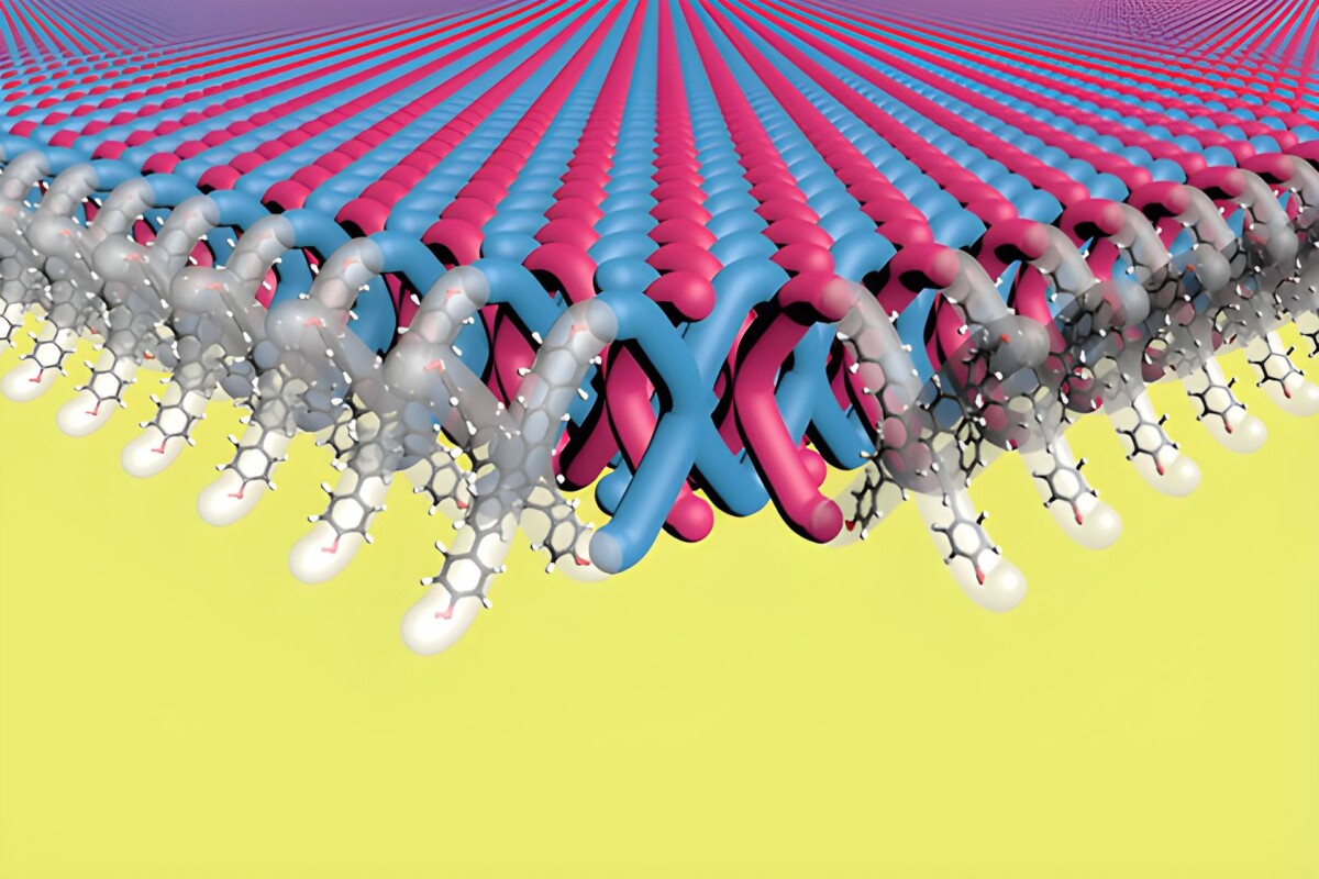 Next, they layered these sheets in a crystalline structure and coaxed the ends of all the X's to attach to each other through the introduction of a chemical known as dialkyldichlorosilane. More layers caused more monomers to spread and connect through the lattice, resulting in a series of loops all threaded together in a super-strong web akin to the metal links in chainmail.