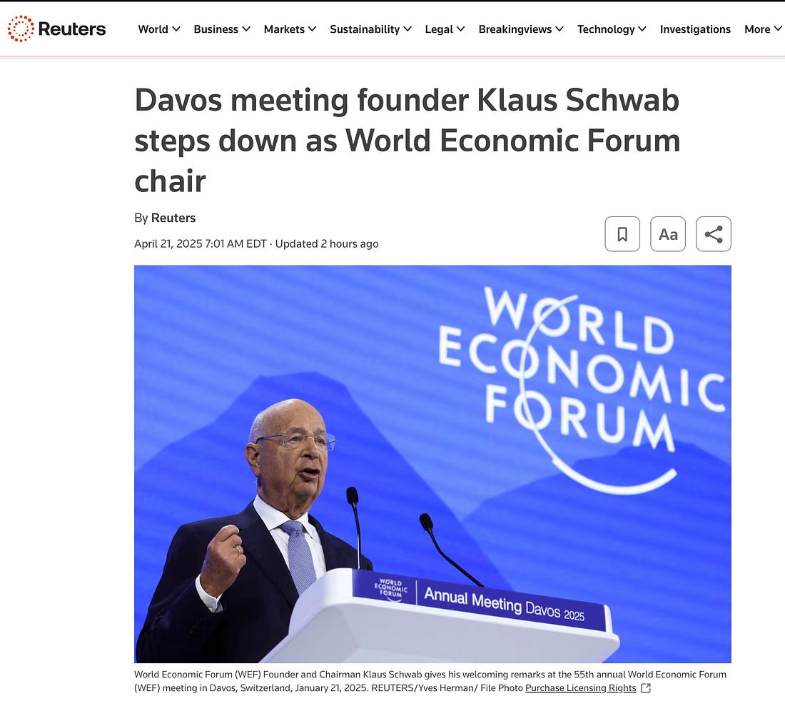 Klaus Schwab’s recent resignation from the World Economic Forum (WEF)—an organization that has long functioned as the ceremonial brainstem of global technocracy—is more than a career move. It is an omen. A signal that the tectonic plates of global power are shifting beneath our feet. And it is not just a resignation. It is a resignation in the truest etymological sense: a re-signing, an acknowledgment of defeat, a relinquishing of authority that was never rightfully conferred.