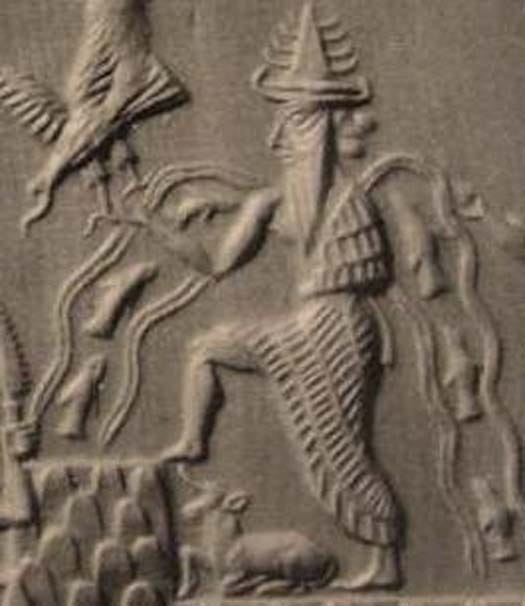 Detail of Enki (Ea) from the Adda seal (Public Domain)