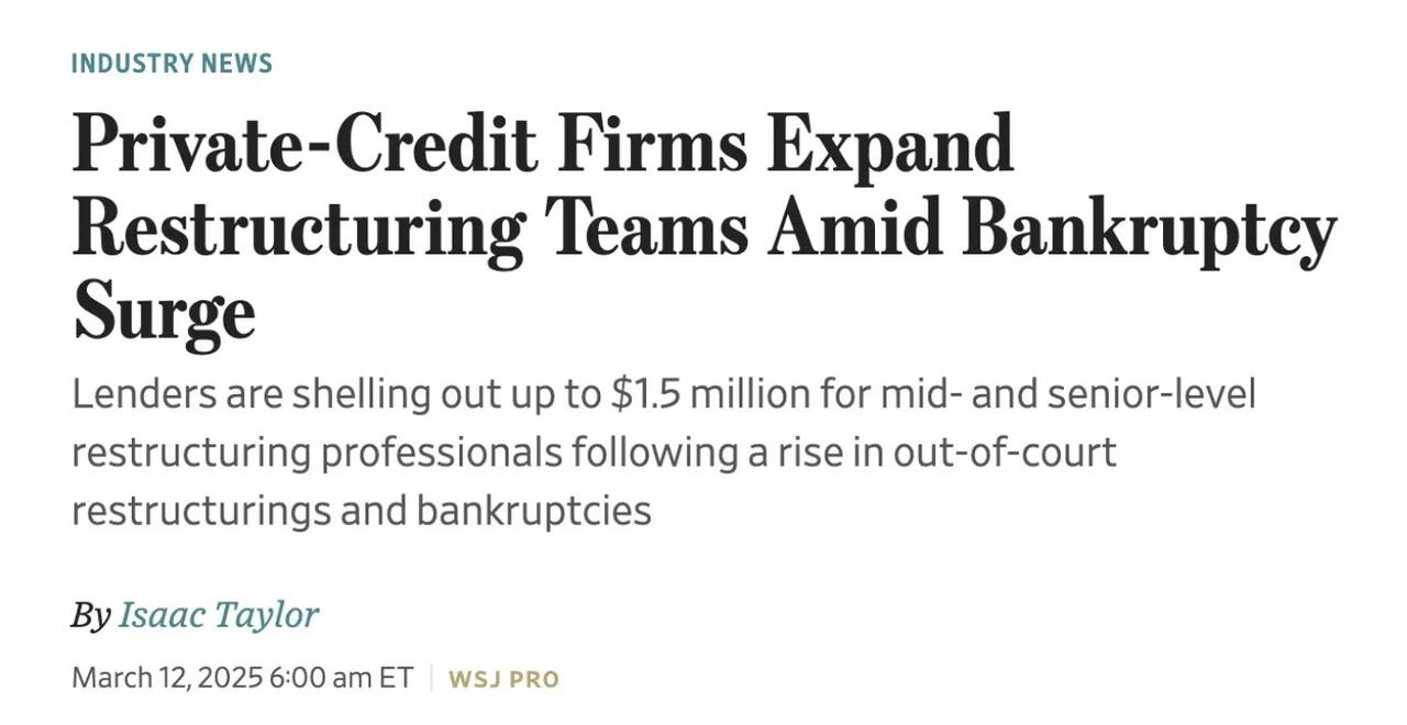 Wall Street Journal Pro, Isaac Taylor, “Private-Credit Firms Expand Restructuring Teams Amid Bankruptcy Surge,” Mar. 12, 2025.