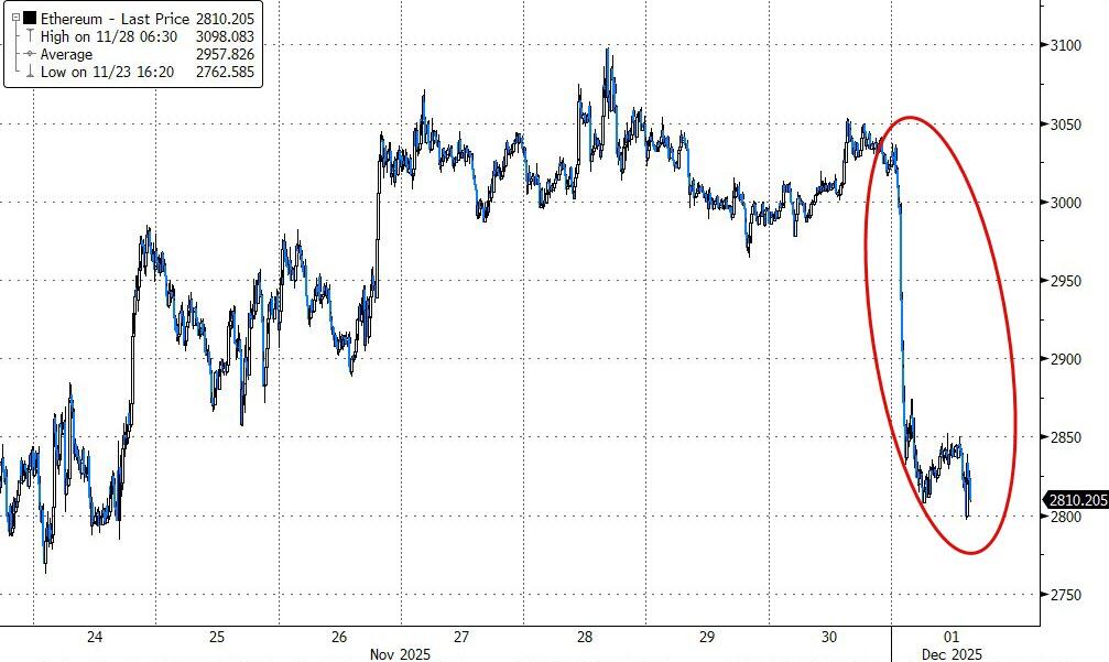 Ethereum also tanked, back below $3,000...