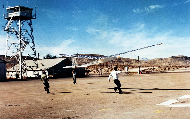 At the time, solar cells were about half as efficient as today’s technology. The AstroFlight team quickly created an improved model, Sunrise II, which was 13 percent lighter and had 33 percent more power than its predecessor. On a test flight in September 1975, Sunrise II reached an altitude 17,200 feet but sustained “severe” damage before reaching the goal of 73,000 feet.