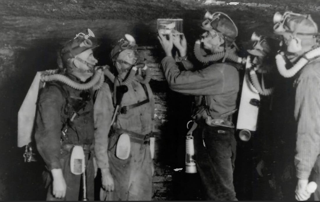 Birds tend to be much more sensitive to environmental toxins than humans (e.g., I’ve heard numerous stories of birds dying while in the vicinity of someone cooking with a teflon pan). This principle in turn was utilized by coal miners who were always at risk of a lethal toxic gas buildup (particularly of carbon monoxide) occurring in the mines. Since carbon monoxide is odorless, they would bring canaries with them and if the canaries suddenly died, they immediately got out as they knew they eventually would too.