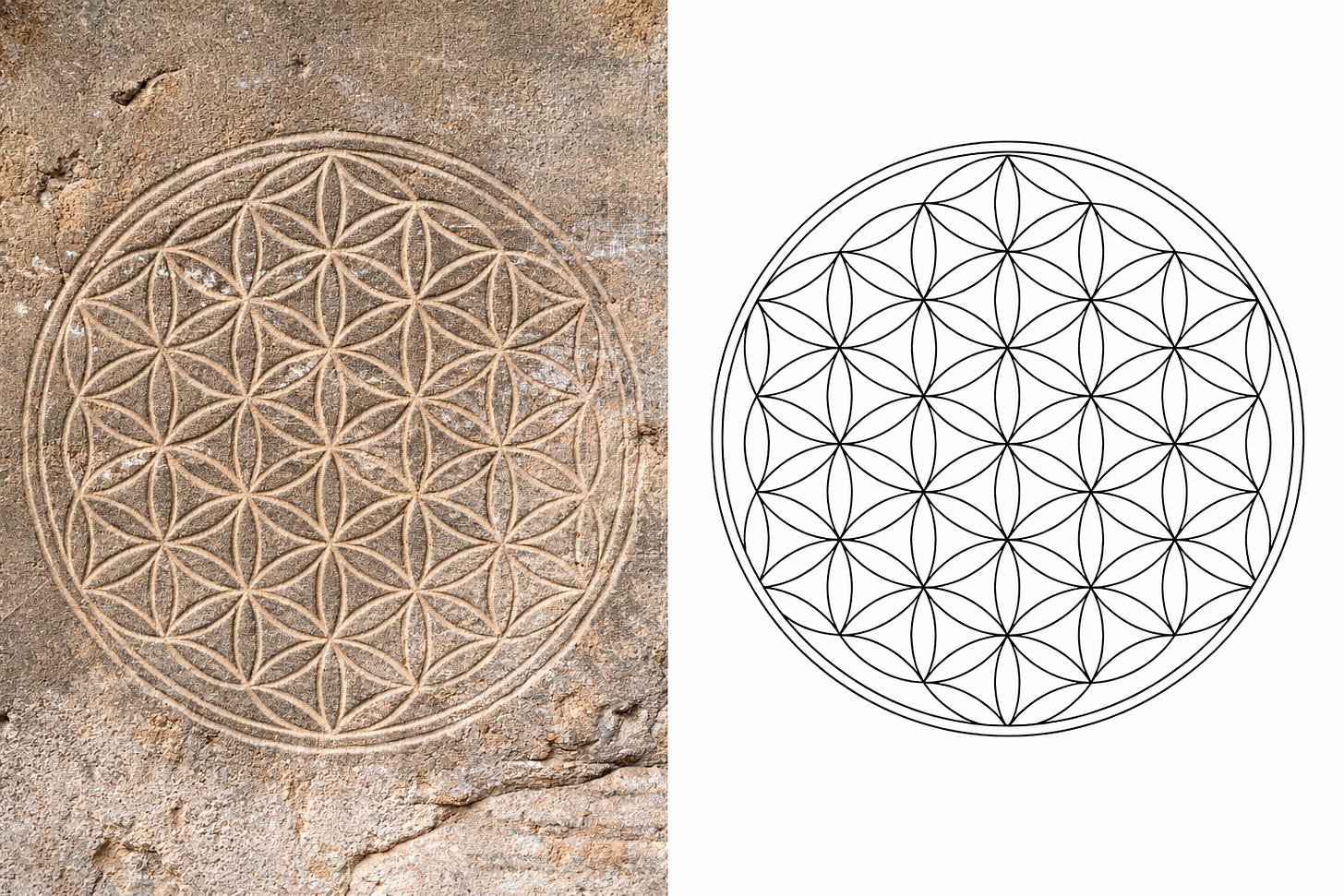 There is a geometric pattern that has been found carved into the walls of the Temple of Osiris at Abydos, Egypt. It has been found in the Forbidden City of Beijing, under the paw of the Guardian Lion. It has been found in Phoenician art, in Indian temple carvings, in the synagogues of Galilee, in the notebooks of Leonardo da Vinci.