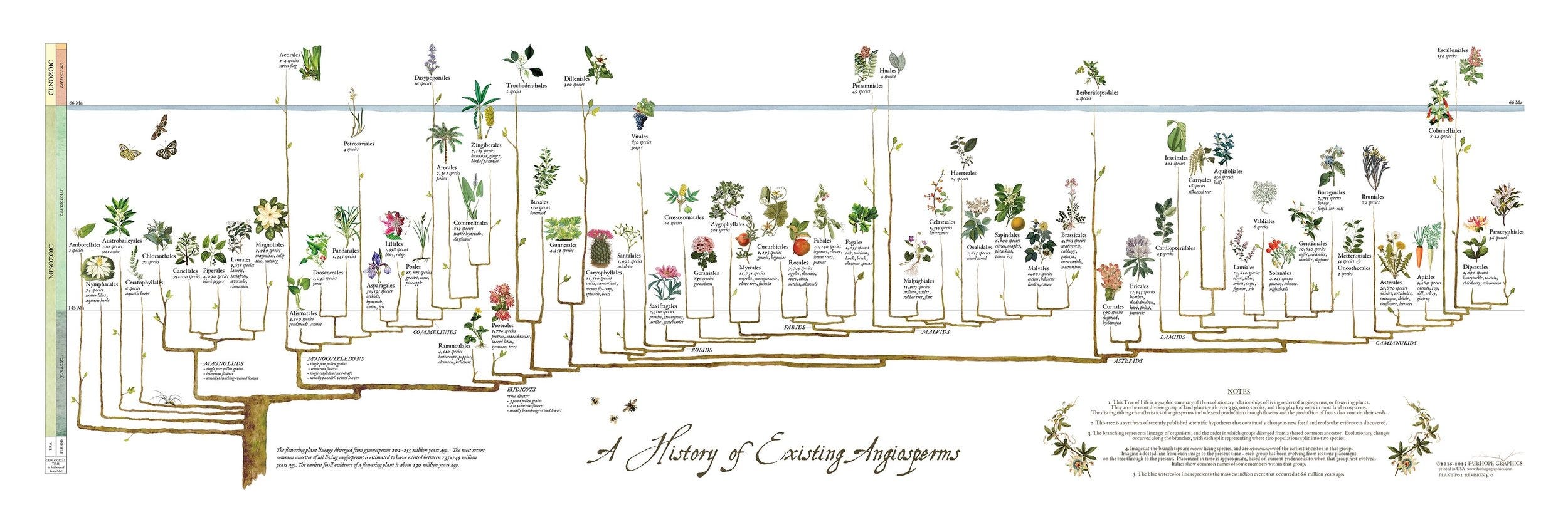The flowering plants — the angiosperms — are the basis of almost everything we eat. Every grain. Every fruit. Every vegetable that sustains human civilization. Rice, corn, tomatoes, peppers, almonds, coffee, chocolate — all of them are flowers, fruited.